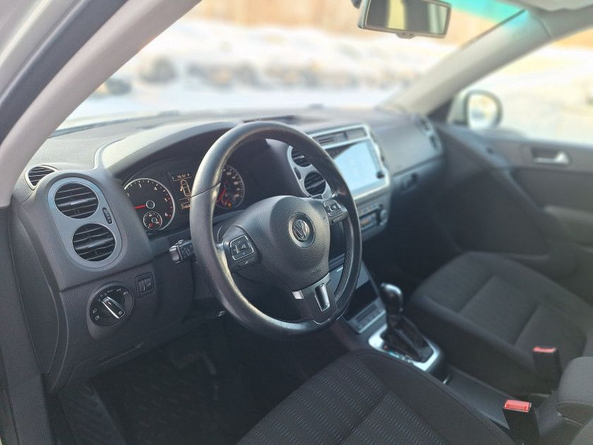 Volkswagen Tiguan I Рестайлинг 2012 года — практичный и функциональный внедорожник с пятидверным кузовом. Серебристый цвет и лаконичный дизайн делают автомобиль заметным на дороге, а его конструкция проверена временем.